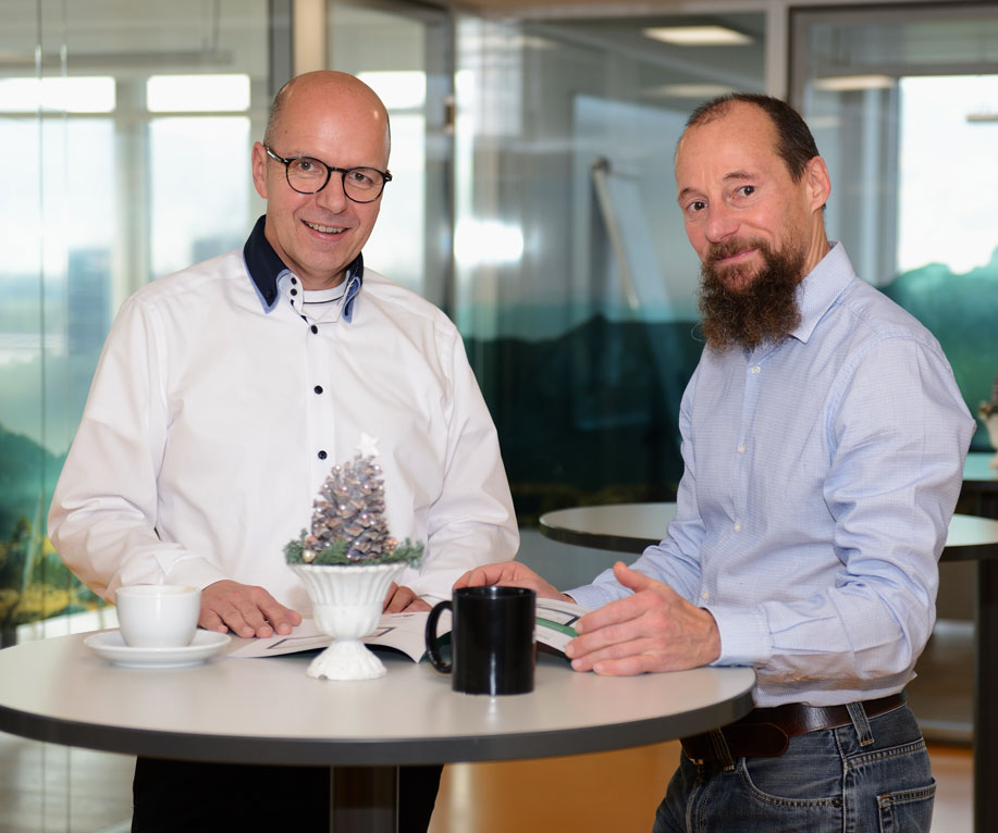 v.l.n.r. Andreas Dieterich und Alex Sturzenegger (Geschäftsführer, Printplus AG)